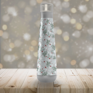 Purple Flowers and Eucalyptus Leaves Handle Lid Water Bottle