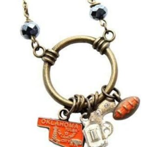 Wear this adorable charm keeper to show your love of the Oklahoma State football team. In fact, you can wear it everyday to show your love of our Pokes! Your charm keeper will include an Oklahoma, football, and pistol charm on an antiqued bronzed, 30-inch charm keeper necklace.        Pistols Firing!       Complete your game-day...