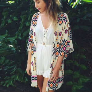 Pattern Type: Solid Material: Polyester,Cotton Fit: Fits true to size, take your normal size SKU: CE010 Color: Geometric print Size: One Size Material: Chiffon/Broadcloth Season: Summer/Spring Beach Maxi Dress: Sexy&Club/Kimono Crochet Style: Kaftan Floral Swimsuit coverups: Tunic Sarong Bathing Suit Coverups Color Style: Natural ColorNatural Color Cardigan: Chiffon Dress Bust: 132CM Sleeve:26CM Length: 75CM