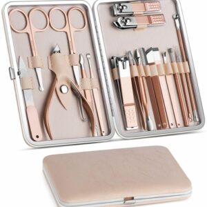 This 18 in 1 set of Manicure Pedicure Tools is perfect for DIY.  Stylish and trendy Rose Gold accents make your vanity look pretty and the hardened Stainless Steel tools can last you for the longest time. This highest quality set will never rust and it's compact storage and carry case makes it easy to...