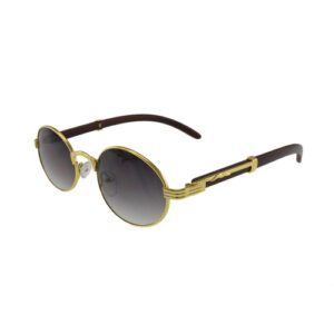 Luxury oval shaped sunglasses with decorative metal temple accents, featuring a metal and faux wood combination frame and temples giving it a ultra luxurious feel and vintage throwback style. Complement any look with these fashion forward sunglasses that are sure to become an wardrobe staple. Transition easily from work to play in shades that make...