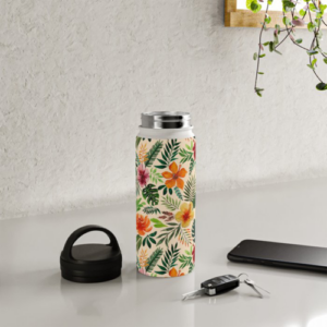 Tropical Watercolor Floral Handle Lid Water Bottle